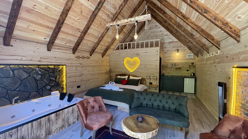 استمتع بإطلالات ساحرة على المناظر الطبيعية المحيطة، مع إمكانية الاستمتاع بمرافق حديثة مثل الإنترنت، وتلفاز، ومطبخ صغير مزود بجميع الأدوات الأساسية. كما تم تجهيز الكوخ بجاكوزي لزيادة مستوى الراحة والاسترخاء.